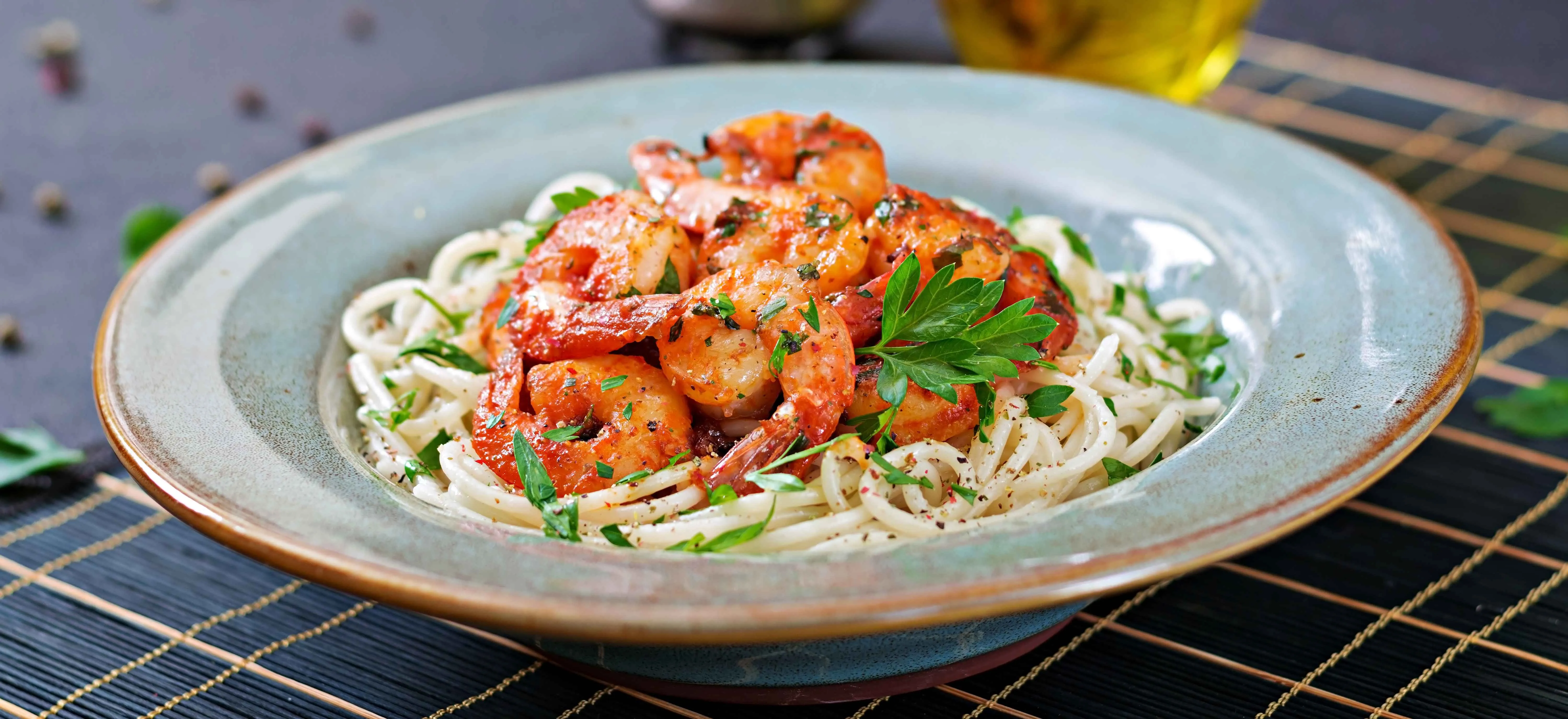 Linguine Pasta, Jumbo Shrimp, Calabrian Chili Pepper, Garlic, Lemon White Wine Butter Sauce
